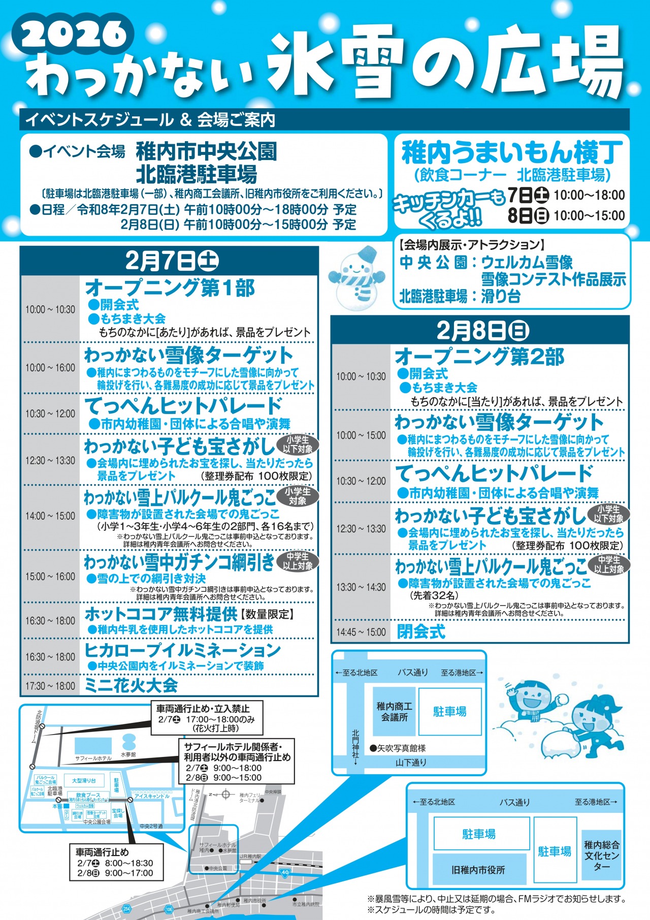 - 0162-23-4400(稚内氷雪の広場実行委員会(稚内商工会議所内))