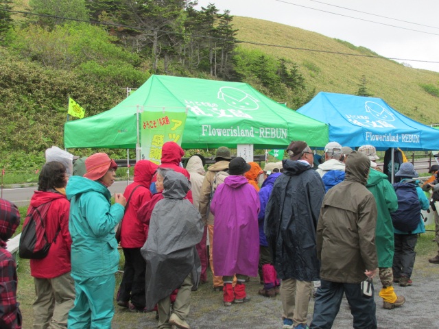 レブンアツモリソウが見ごろを迎える時期に群生地前で「礼文島リボンプロジェクト」のバッジ販売などを行い観光客を迎え入れているミニイベントです。礼文島のマスコットキャラクター「あつもん」に出会えるかもしれません。