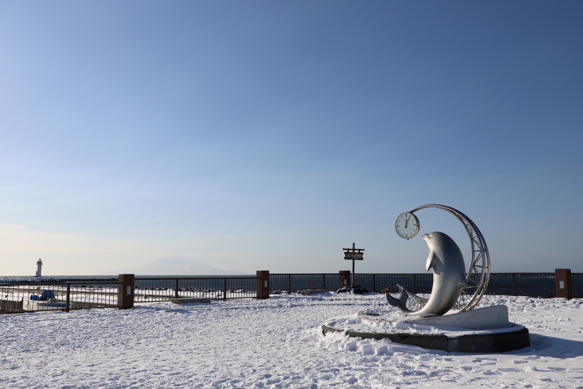 晴れた日には、雪をまとった「利尻富山」と礼文島の穏やかな島影が海の向こうに浮かび上がる絶景スポット。