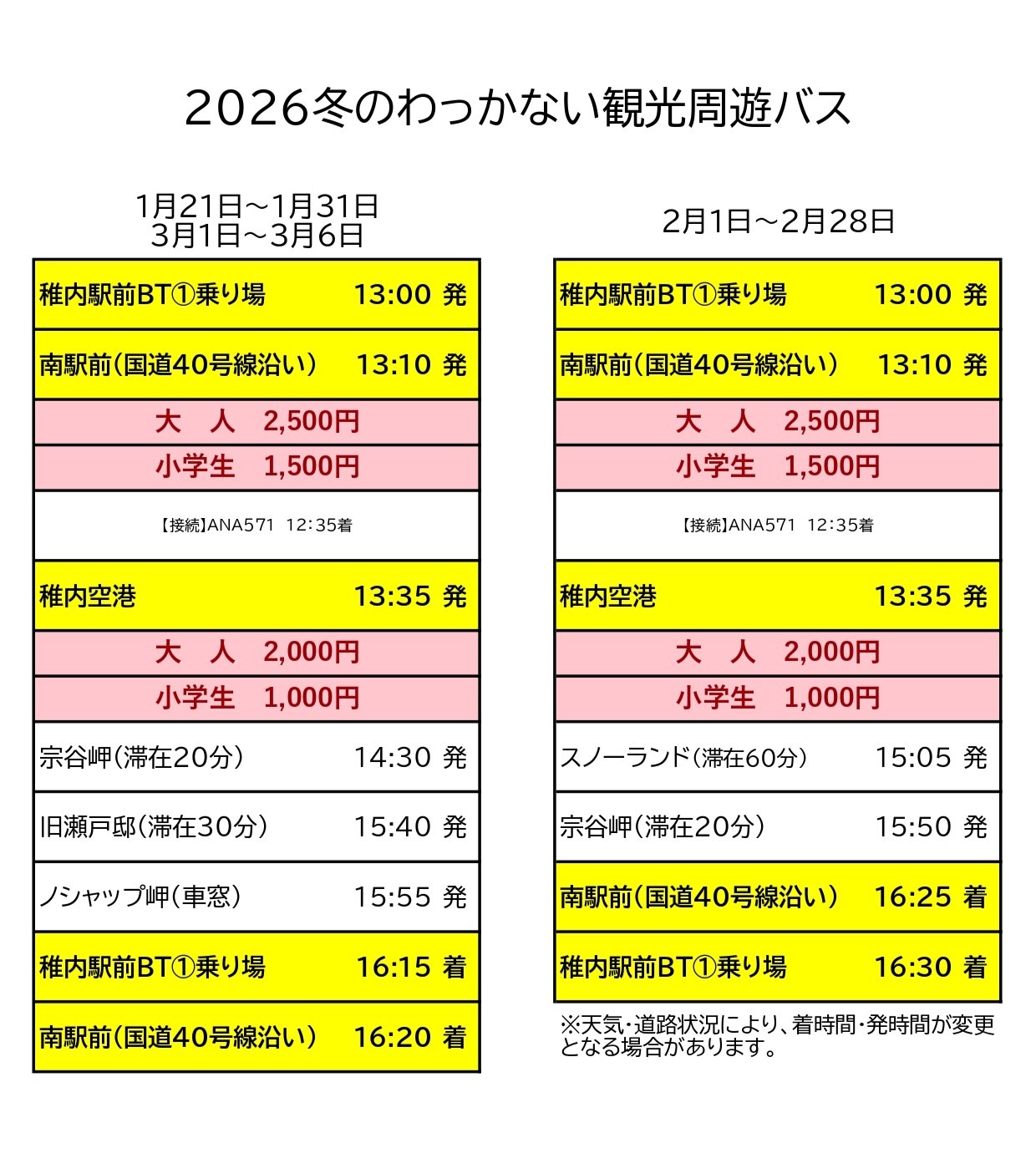 【お知らせ】2026冬のわっかない観光周遊バス運行!!(稚内観光協会)