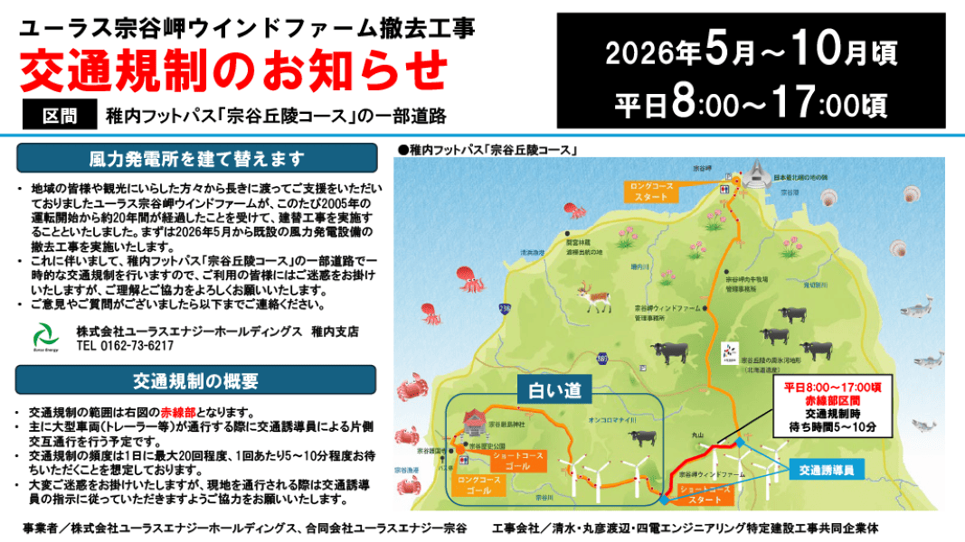 【お知らせ】白い道周辺におけるウインドファーム撤去工事に伴う通行等のご案内